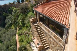 Villa Bella Esther - 4 komfortable, ruhige Fewos mit riesiger Terrasse, BBQ und herrlichem Meerblick direkt über dem Meer - Privatstrand. HP möglich, Mountainbikes, Spielplatz, Pool nach 150 m im befreundeten Hotel. Kl. Hunde willkommen. Zentralheizung.