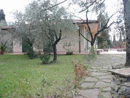 In moderner Kleinvilla auf den Hügeln von Florenz, Aussicht auf Florenz, Garten mit Olivenbäumen, gemeinschaftlicher Garten und Barbecue, Einrichtung praktisch